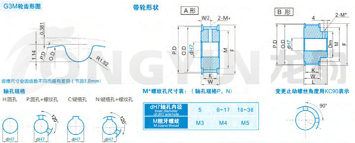 规格 形状 节径P.D 外径O.D 挡边外径F 挡边内径M 轮毂直径Dm 内孔dH7