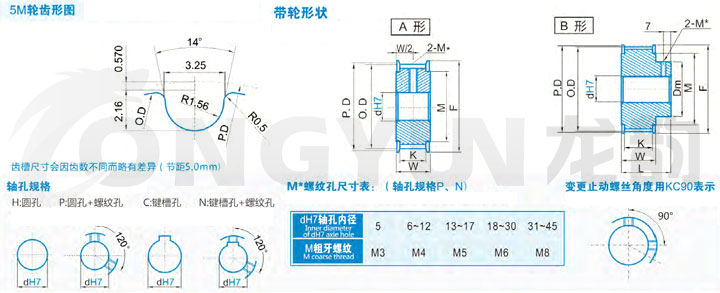 规格 形状 节径P.D 外径O.D 挡边外径F 挡边内径M 轮毂直径Dm 内孔dH7