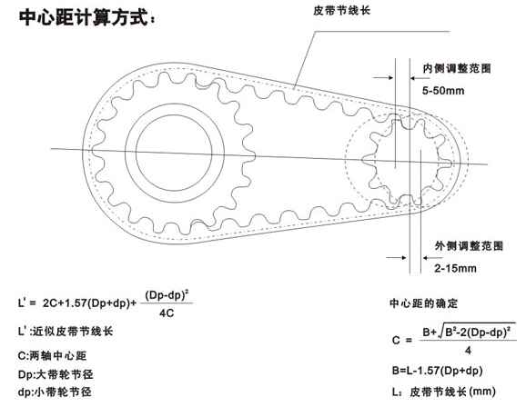 导读:同步带长度与同步带轮中心距计算方法 同步带轮外径及节圆外径示意图备注: Pb=同步轮节圆或同步带节线上测得相邻两齿的距离。 d=同步轮的节圆直径。 do=同步轮实际外圆直径。 同步带张紧轮的安装方法 根据张紧轮