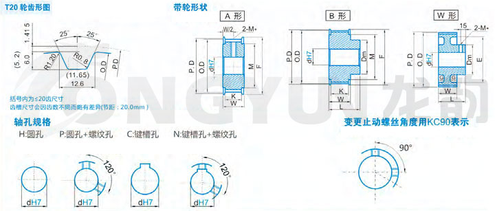 规格 | 形状 | 节径P.D | 外径O.D | 挡边外径F | 挡边内径M | 透孔外径E | 轮毂直径Dm | 内孔dH7 | |||