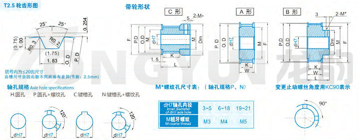 规格 | 形状 | 节径P.D | 外径O.D | 挡边外径F | 挡边内径M | 轮毂直径Dm | 内孔dH7 | ||||